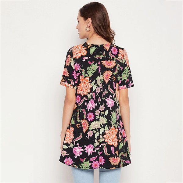 Black & Pink Floral Printed Tunic