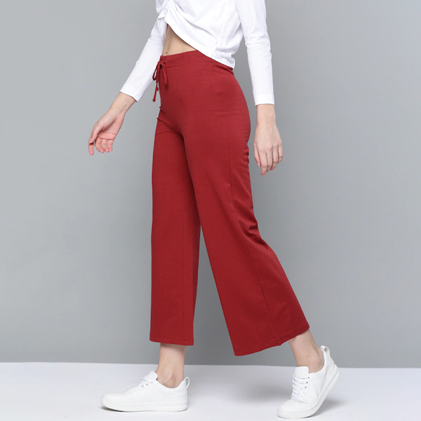 Women Red Solid High-Rise Cropped Wide Leg Track Pants